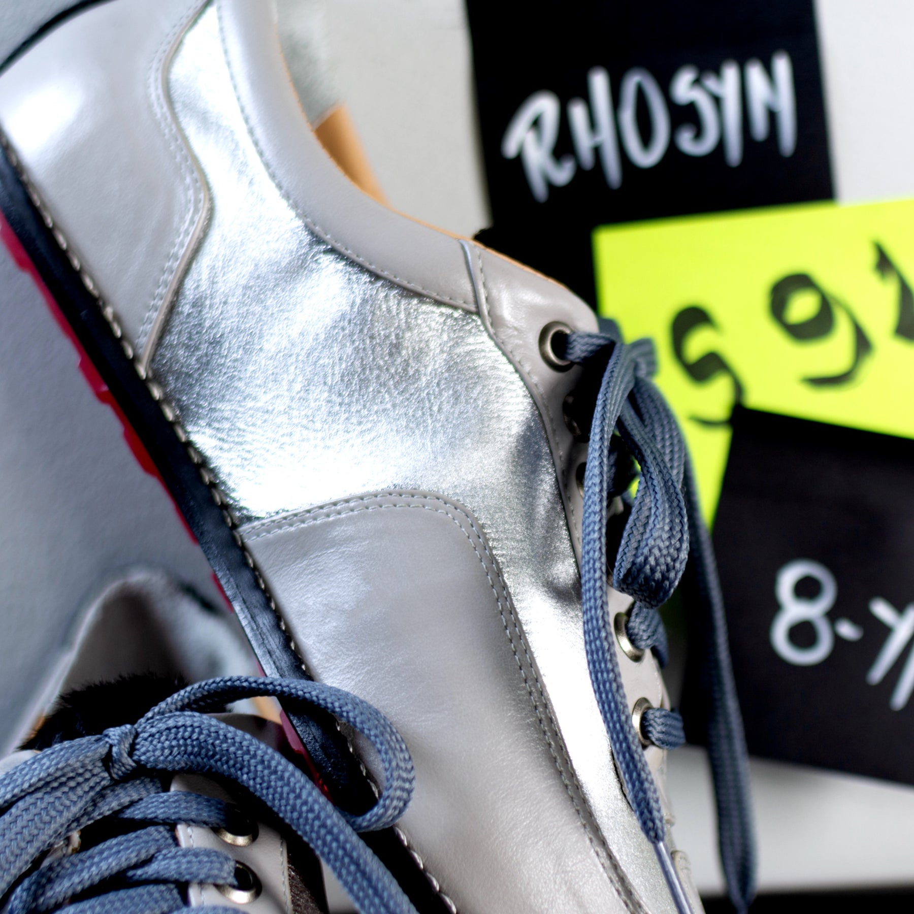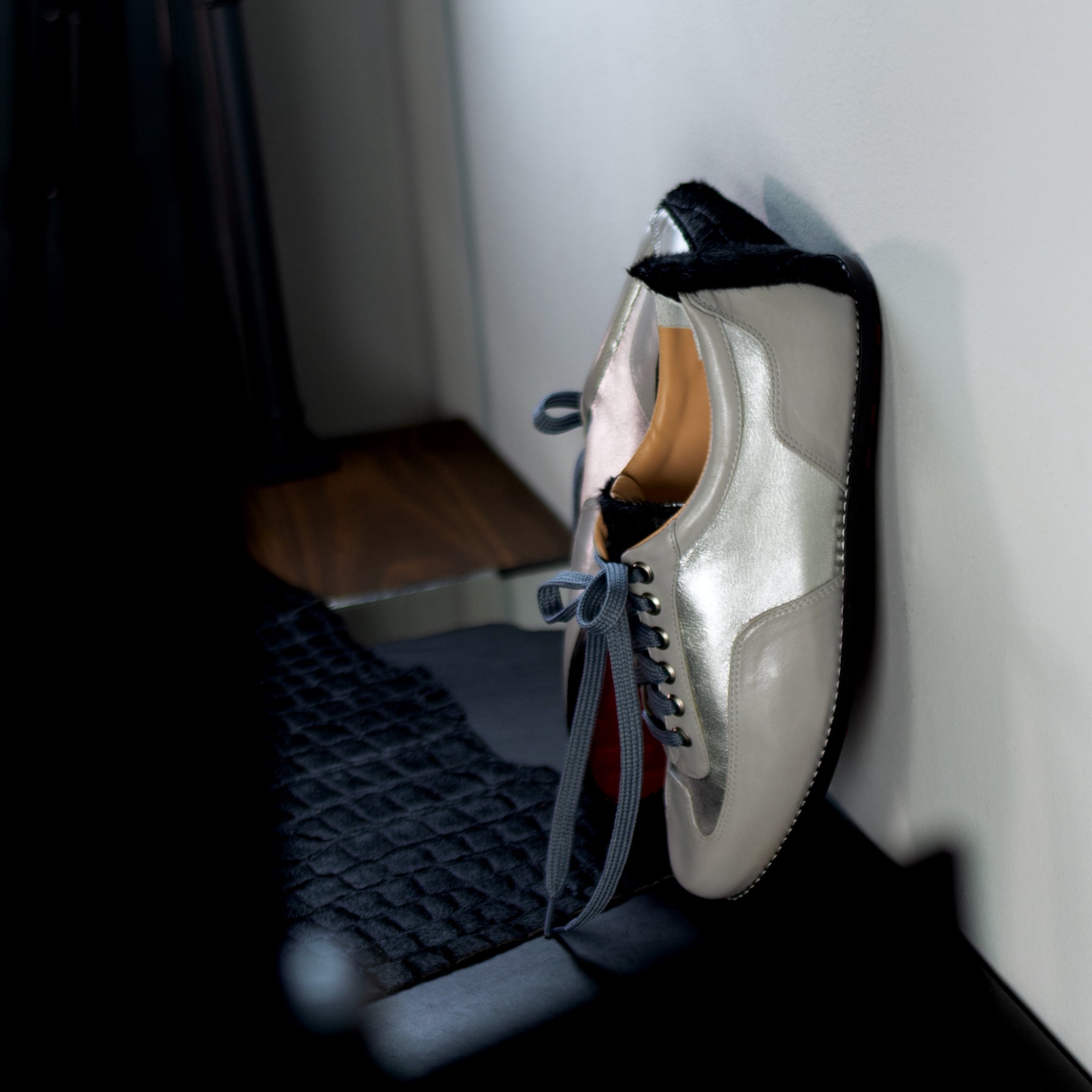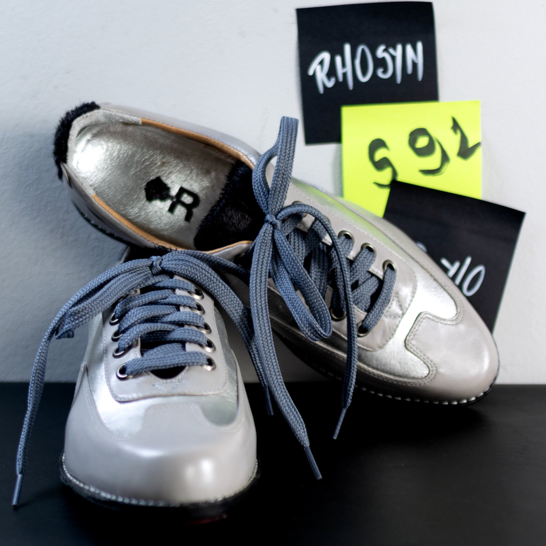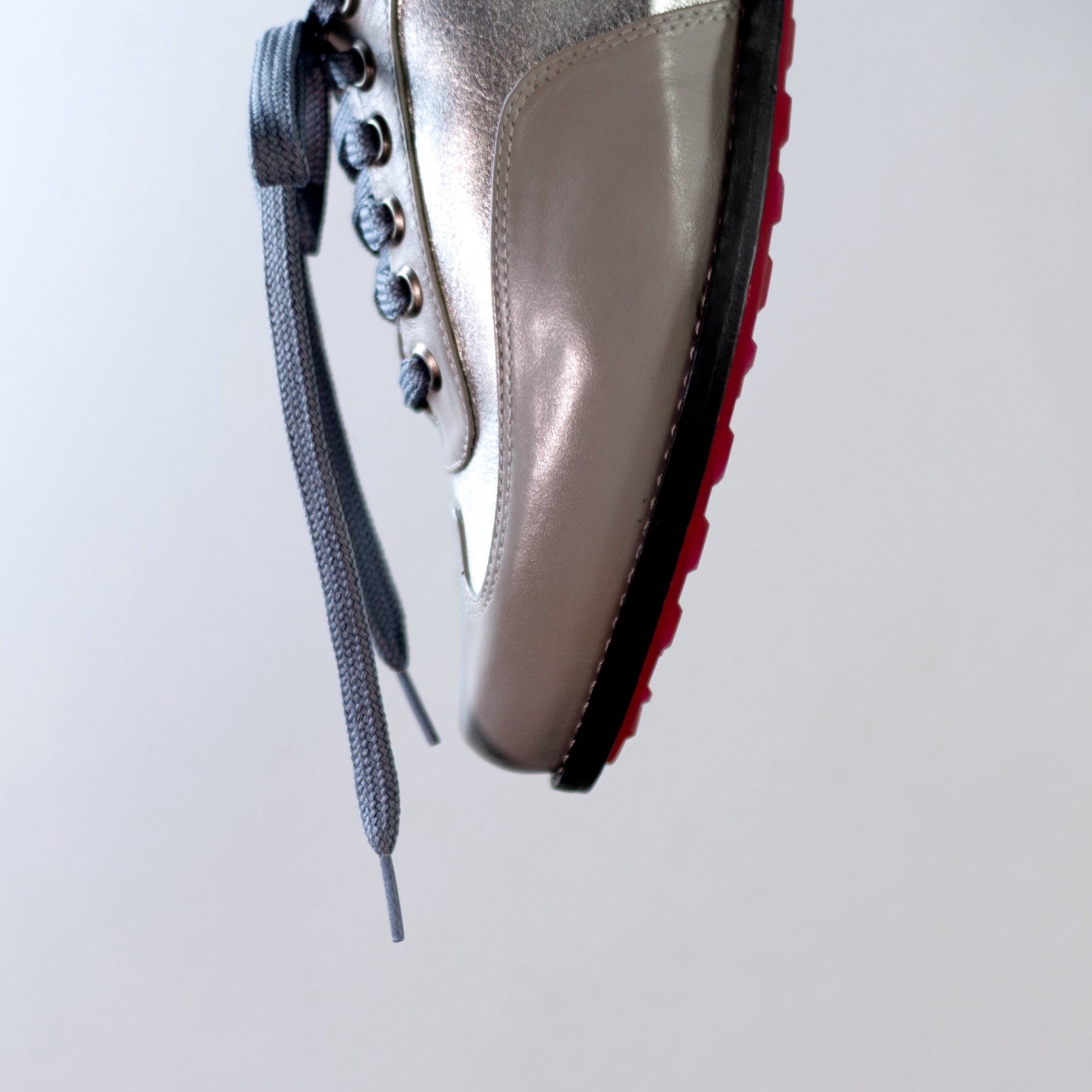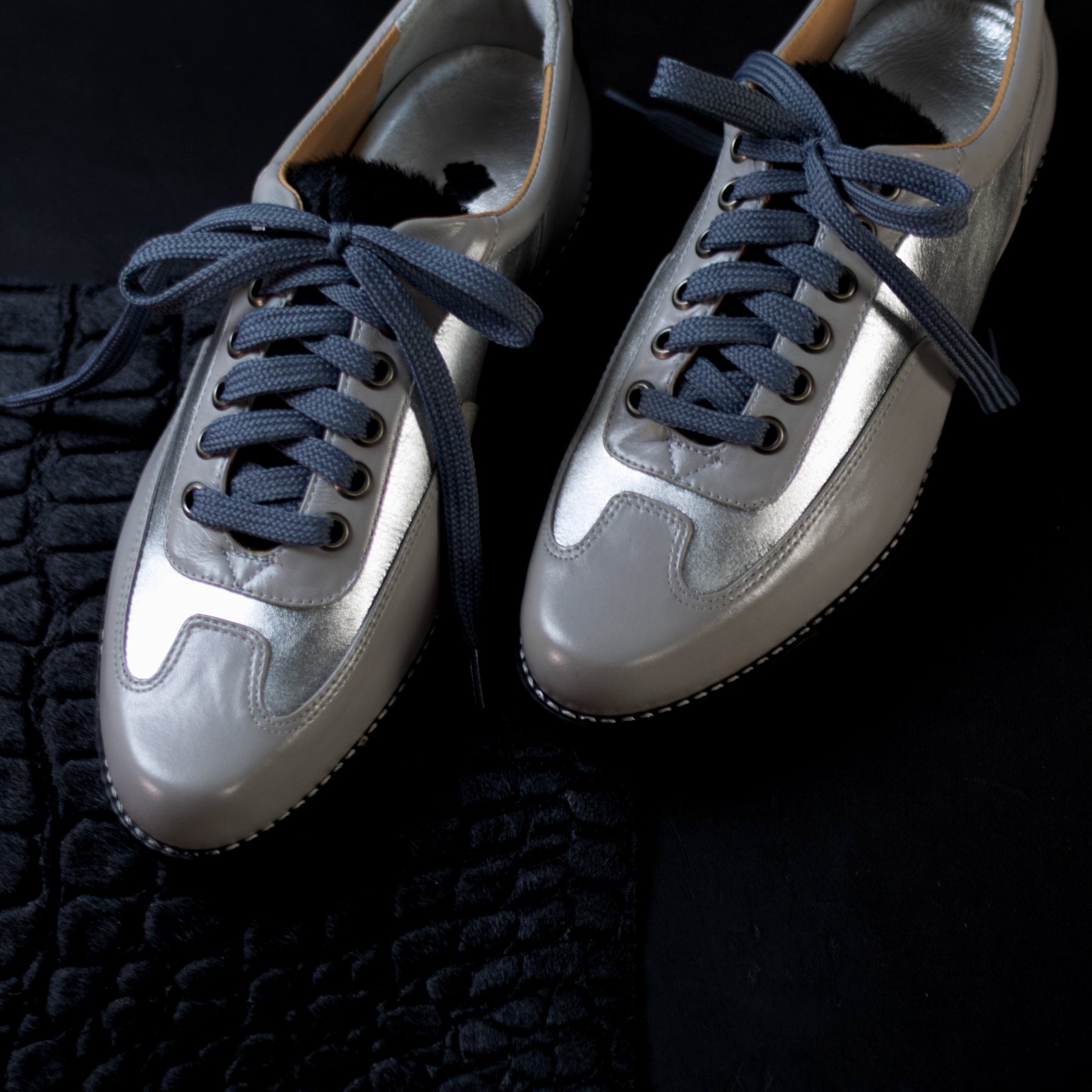 Cadarço Cinza + lingueta e traseiro em pelo croco preto